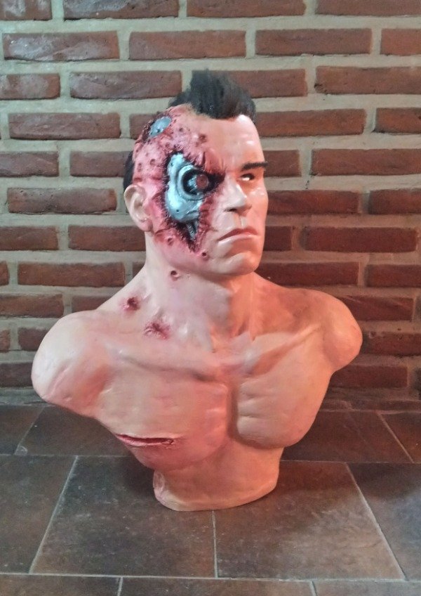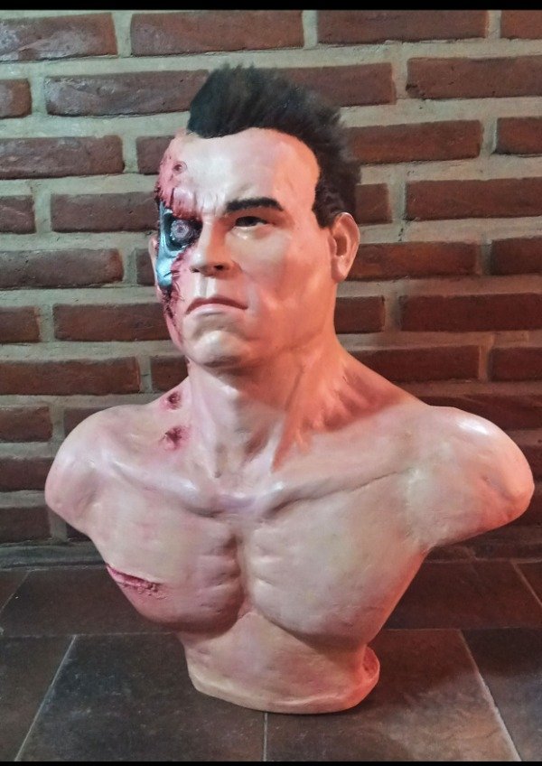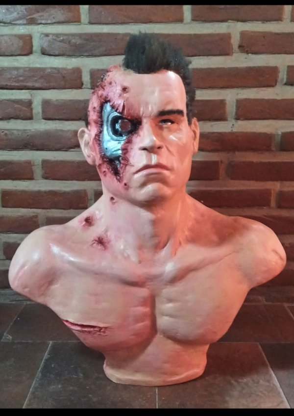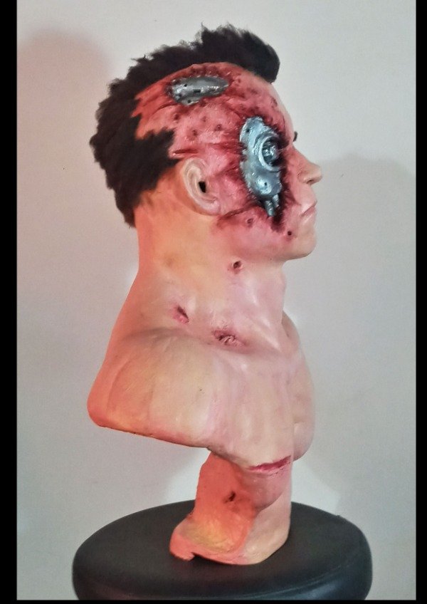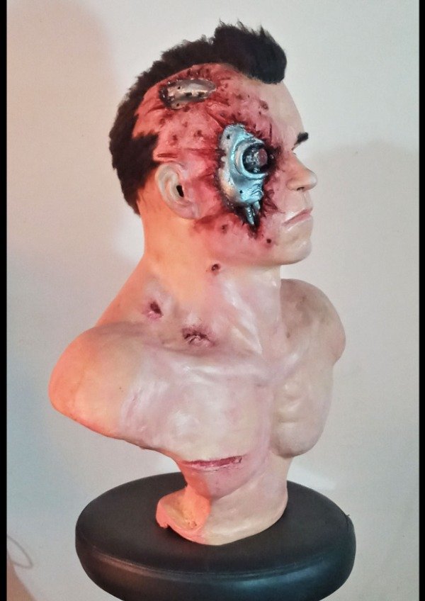busto escultura de terminator en fibra de vidrio y materiales diversos. Ideal para hogares, estudios creativos, bares temáticos, locales etc.